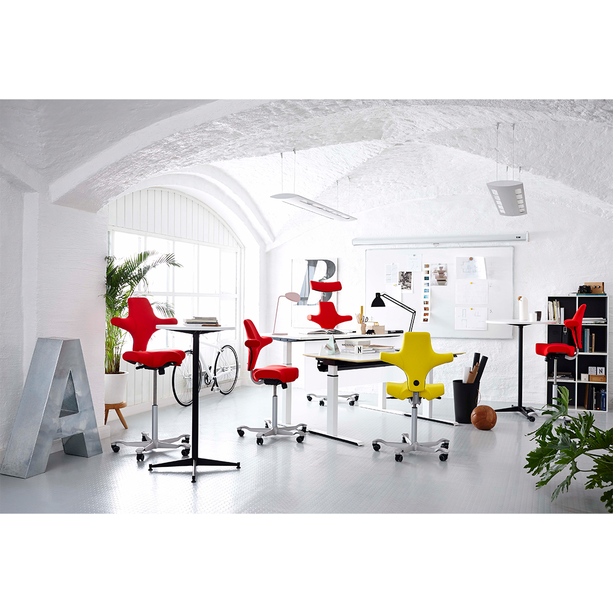 Besides being eye-catching, the HÅG Capisco promotes freedom of movement and natural sitting positions and is ideally suited to raised and height-adjustable desktops.