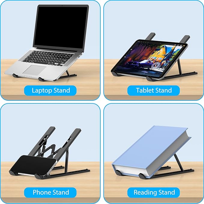 Adjustable & Ergonomic: Elevates your laptop from 3.15" to 5.79" (7 levels), improving posture and reducing neck, back, and eye strain for comfortable work anywhere.