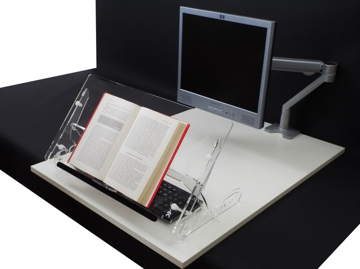 The design of the Go Flex allows you to easily transform it into an reading and writing slope by simply gliding the unit forward over the keyboard. You should always bring the work closer to you and avoid leaning forward in an awkward posture for prolonged periods of time. As the design offers full clearance above the keyboard, you won't have to sacrifice on the angle of document either. Once clear of the keyboard the Go Flex angles can be adjusted to reading/writing angles. And when the keyboard is required the unit simply glides back into its document holder position, to maximise your desk space.