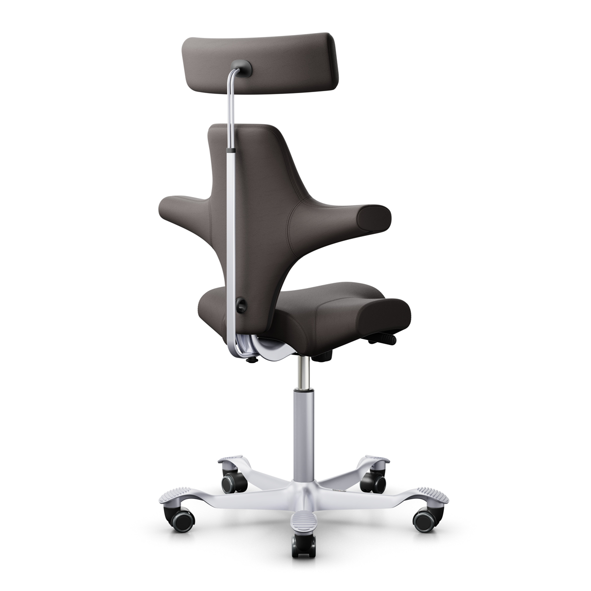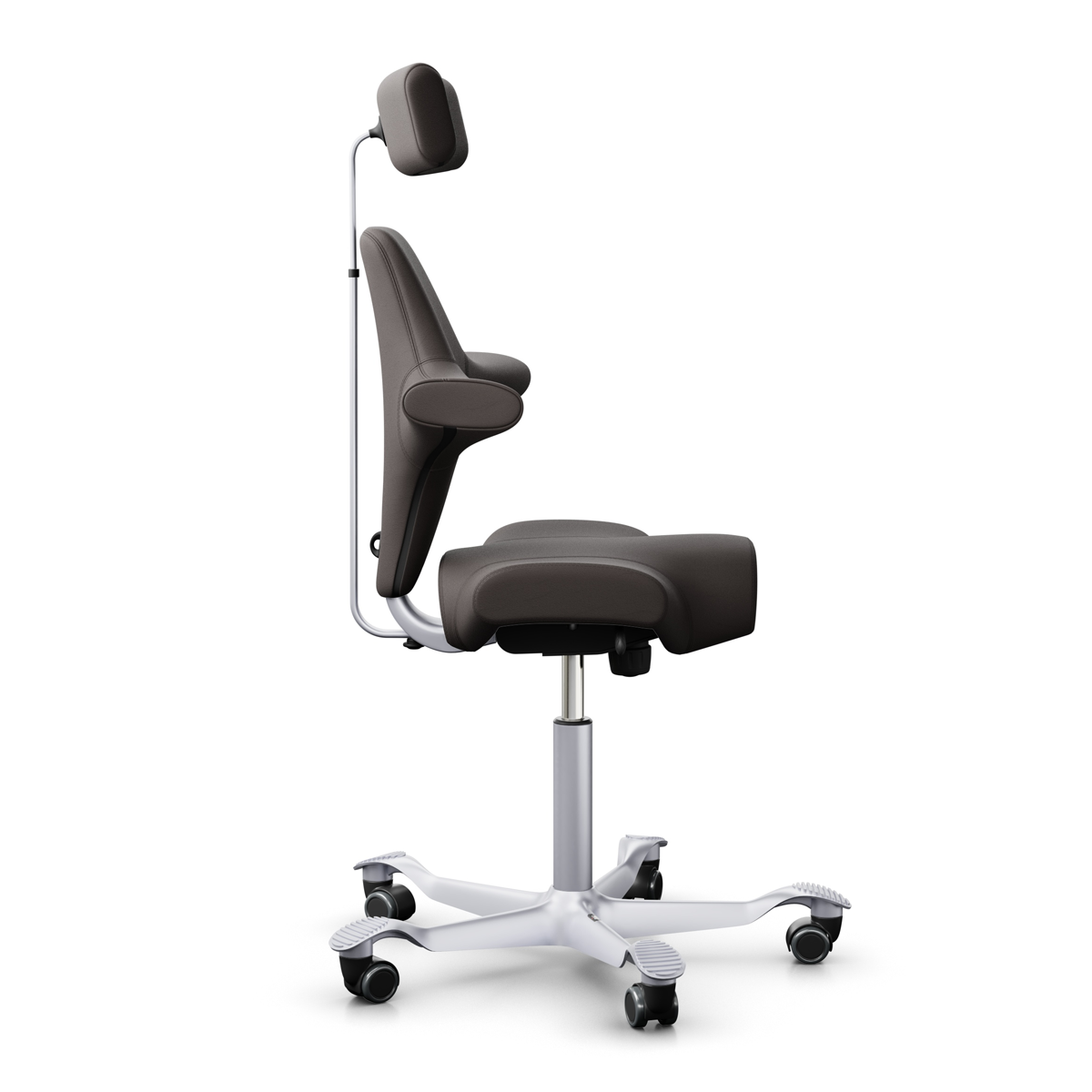 The 8107 model offers a dynamically adjustable headrest to the 8106 specification. Theis fabulous saddle chair allows users to sit in various working postures with support for the back, individual arm, side and even chest to suit the task at hand. The Capisco can be adjusted between low and high working positions, all the way up to standing, enabling you to be more dynamic in your movements while still balanced.