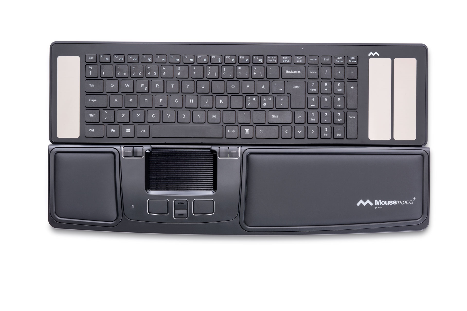 As Mousetrapper is positioned centrally in front of the keyboard it encourages an ergonomically healthy position that keeps your arms close to your body and your hands near the keyboard. This helps you relieve as well as prevent strain injuries that can occur from over-stretching your arm, as you do with conventional mice. The wide, cushioned wrist supports also relieve strain on your neck, shoulders, arms, and wrists.