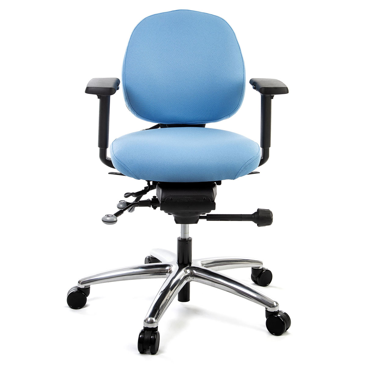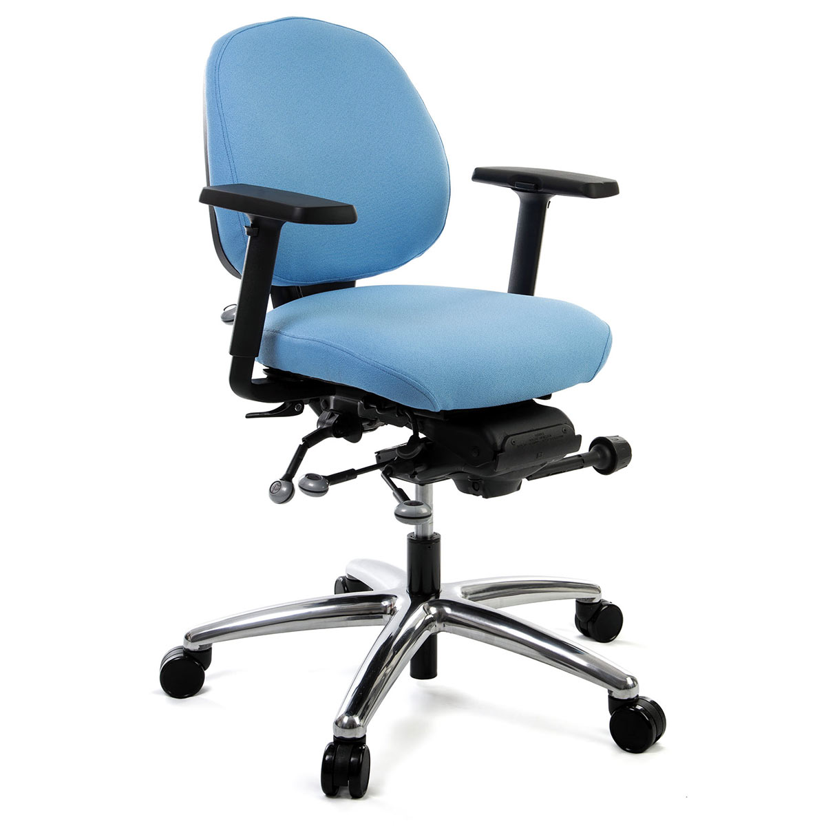 The Opera 20-2 ergonomic chair has a small backrest and short seat to suit the more petite user. Petite users tend to suffer with standard chairs as the seats are too long which either leads to pressure on the back of the knee or forces the user to sit further along their seat and lose back support.