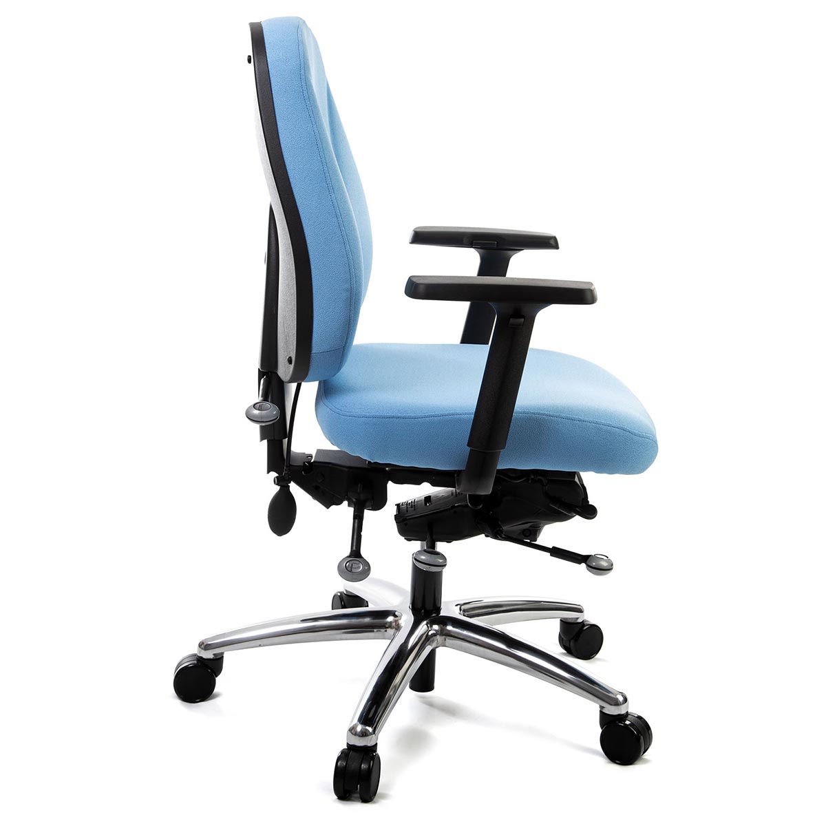 The Opera 20-5W ergonomic chair has a medium and wide backrest and a wide seat for average height but broader width user. The Opera 20-5W has a knee tilt mechanism which delivers a smooth and comfortable rocking action to stimulate greater movement whilst seated. The Opera 20-5W ergonomic chair includes a vast range of standard features for maximum comfort and a perfect fit, as well as a sewn edge seat and back for evenly distributed sitting comfort.