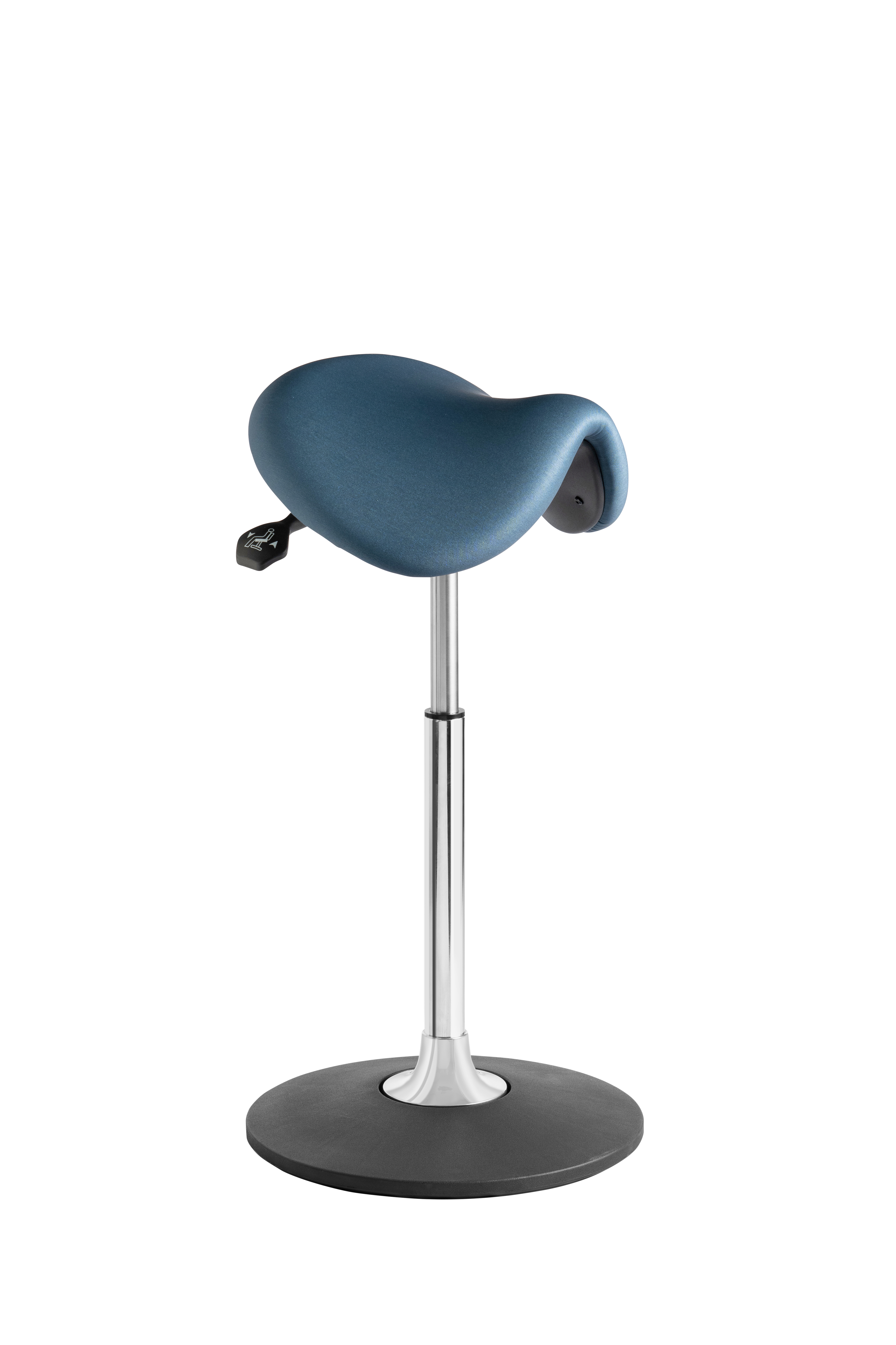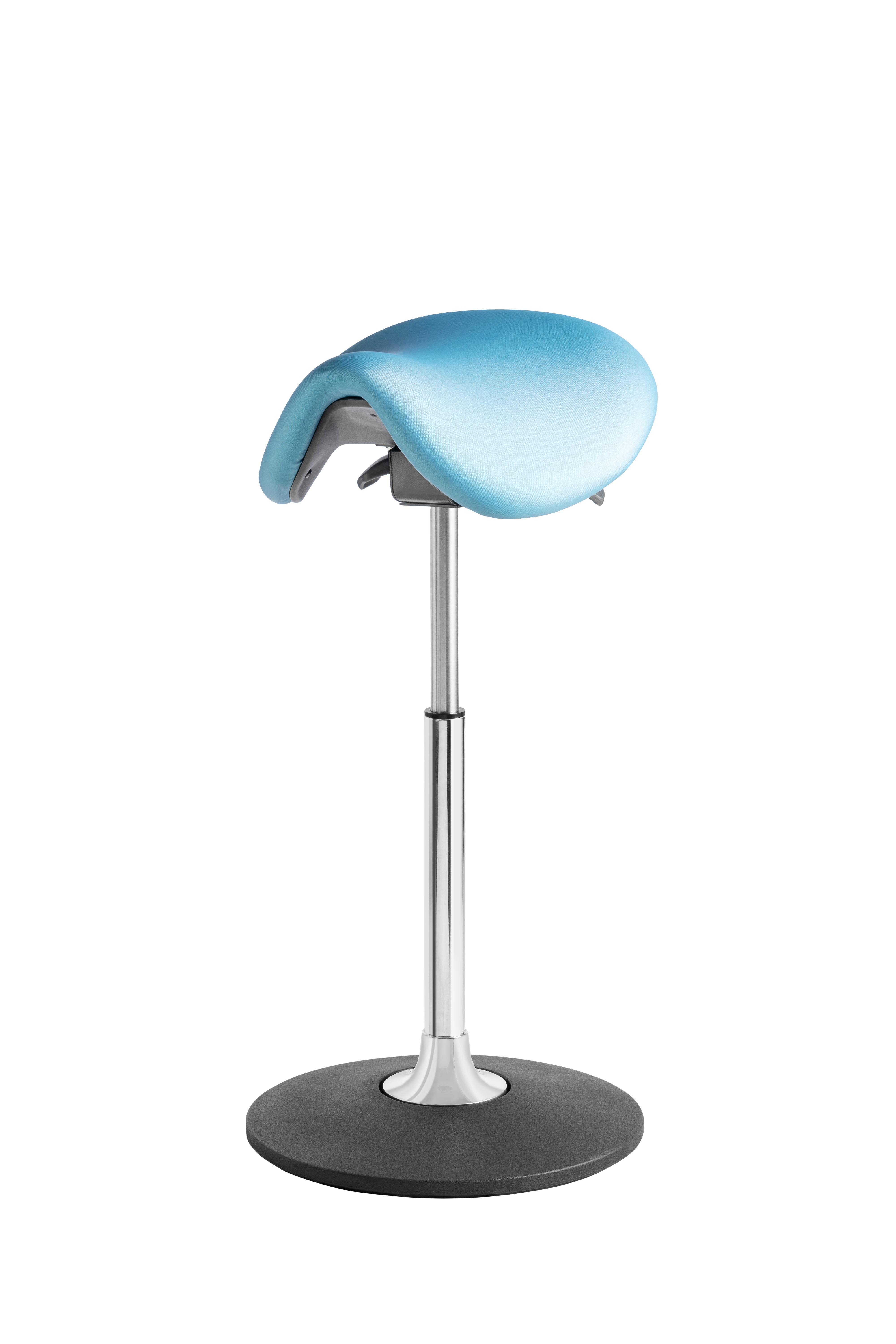The Oxford Base Saddle stool is a dynamically height-adjustable seating solution, featuring standard seat angle adjustment. Its innovative mechanism operates from the axis of the column base, allowing the gas spring to intuitively move the saddle in any direction along with the user.