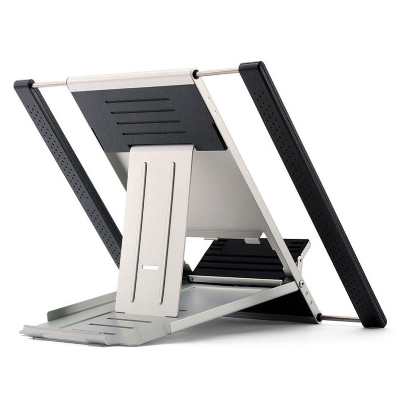 This adjustable laptop/tablet stand is made of high grade and light weight aluminium. It has a slim design which displays the device at seven different angles for viewing comfort.