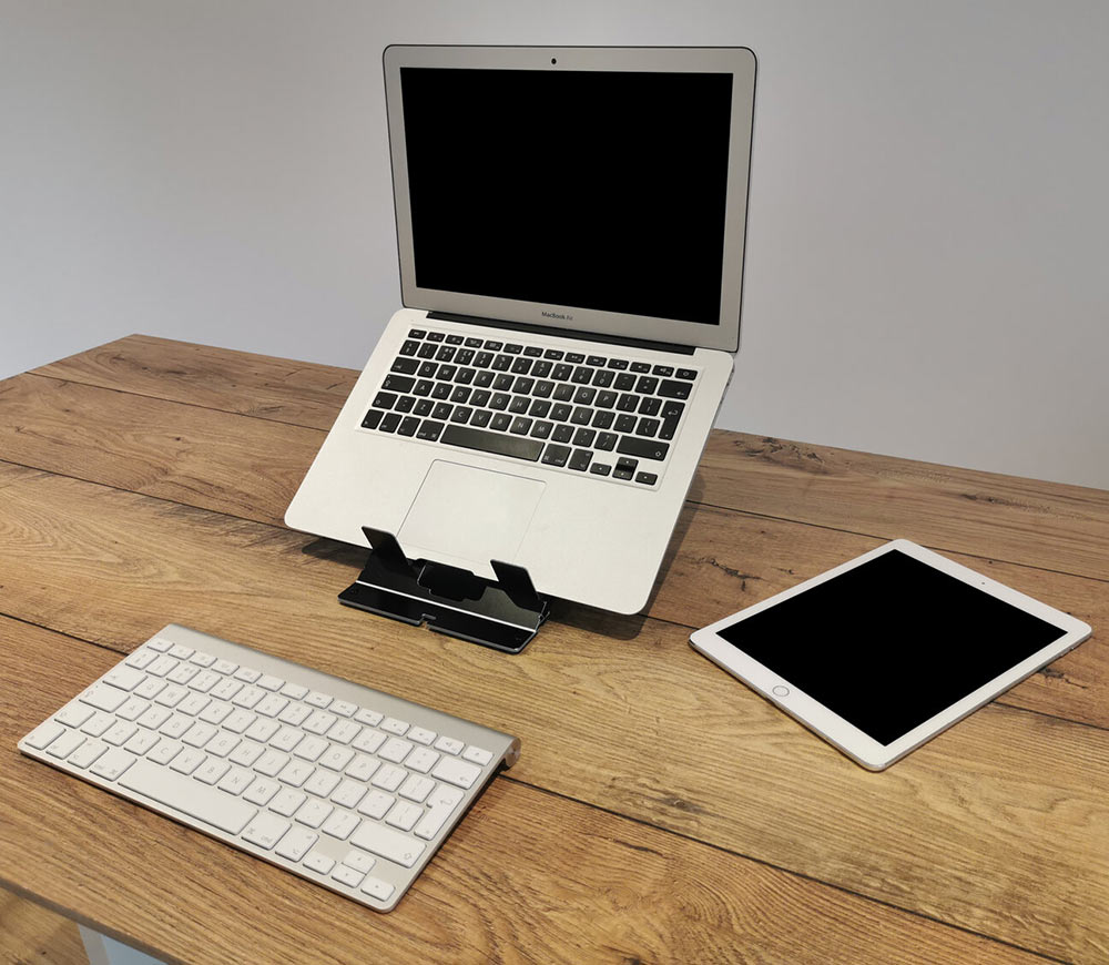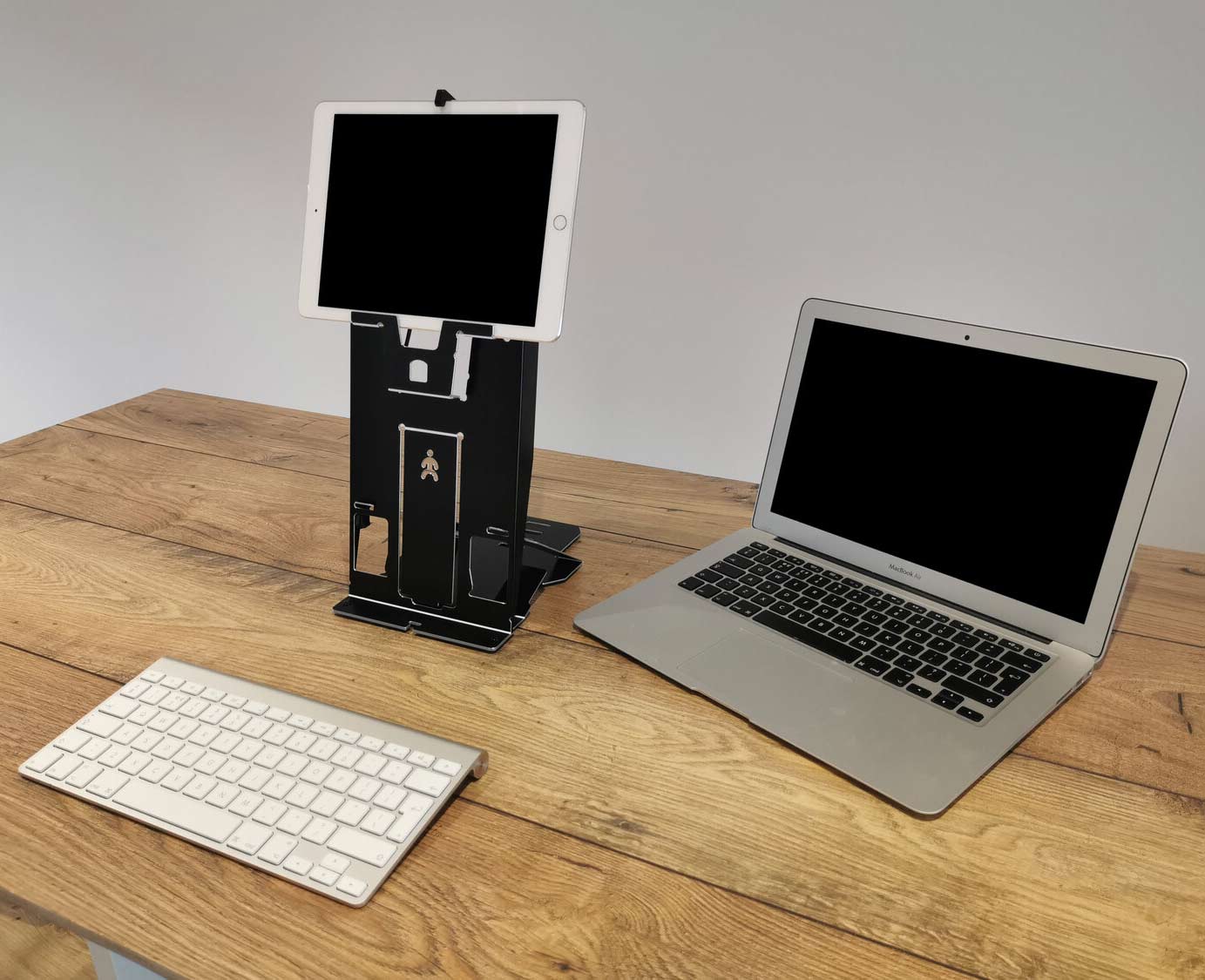 As a tablet stand: Suitable for all portable iPad models, Microsoft Surface, Galaxy etc and any other tablet up to 10mm in thickness. And unlike other stands TIO supports the tablet screen upright to reduce glare and reflected light.