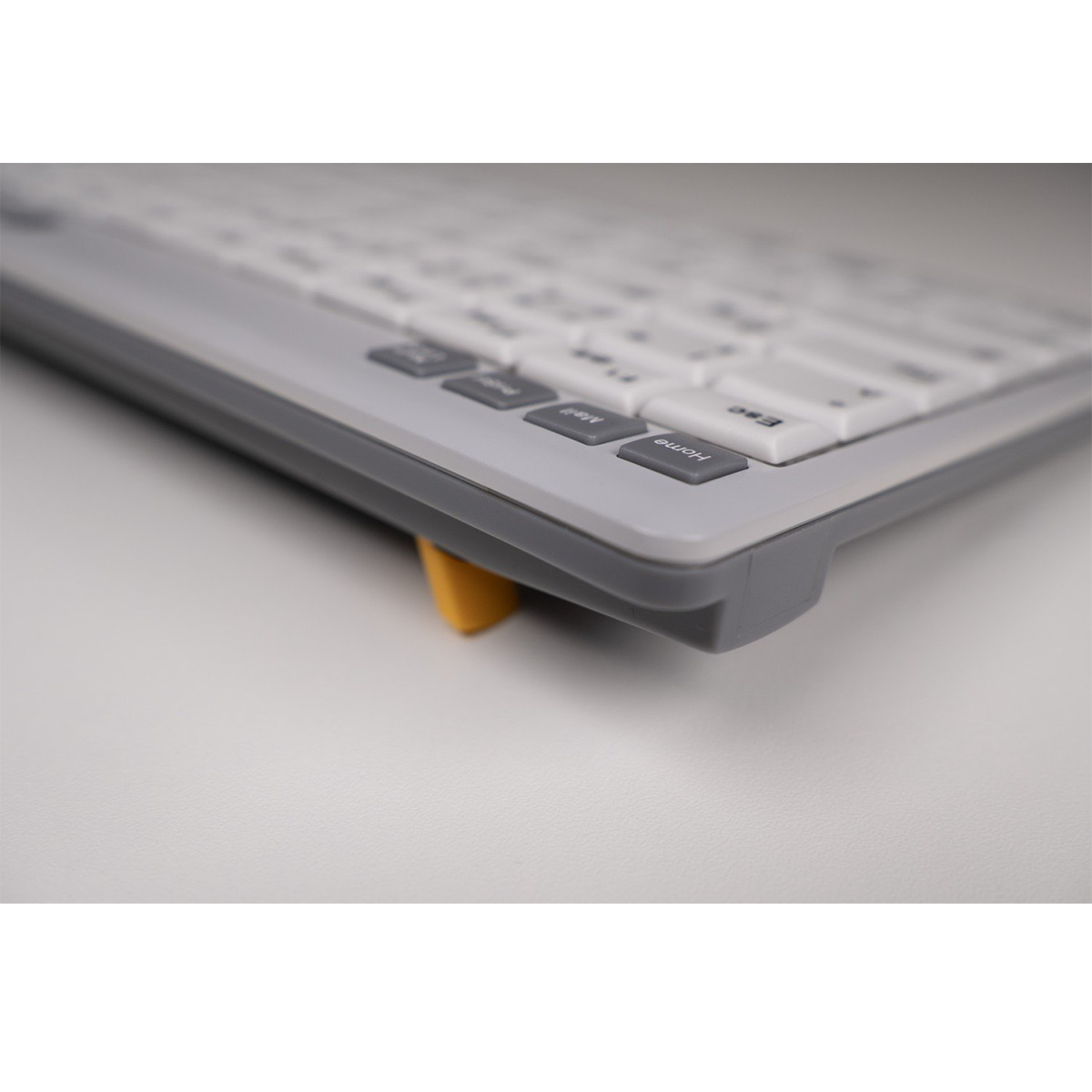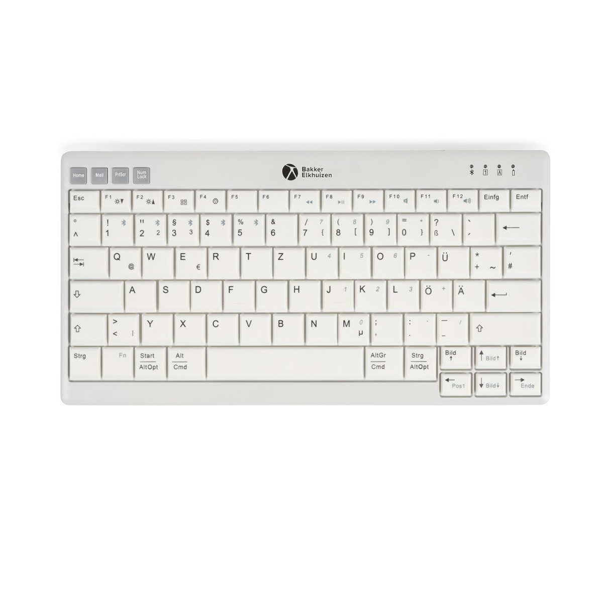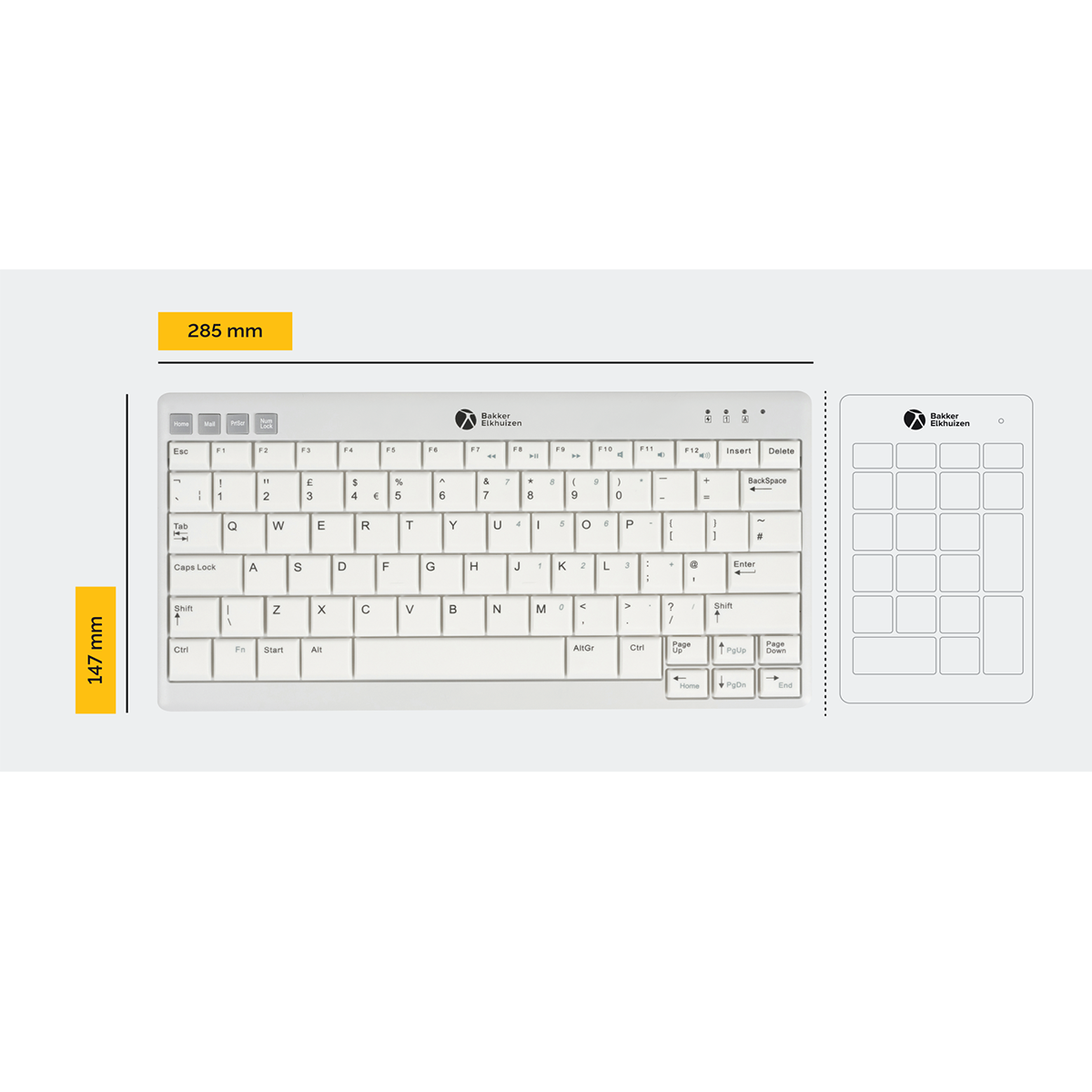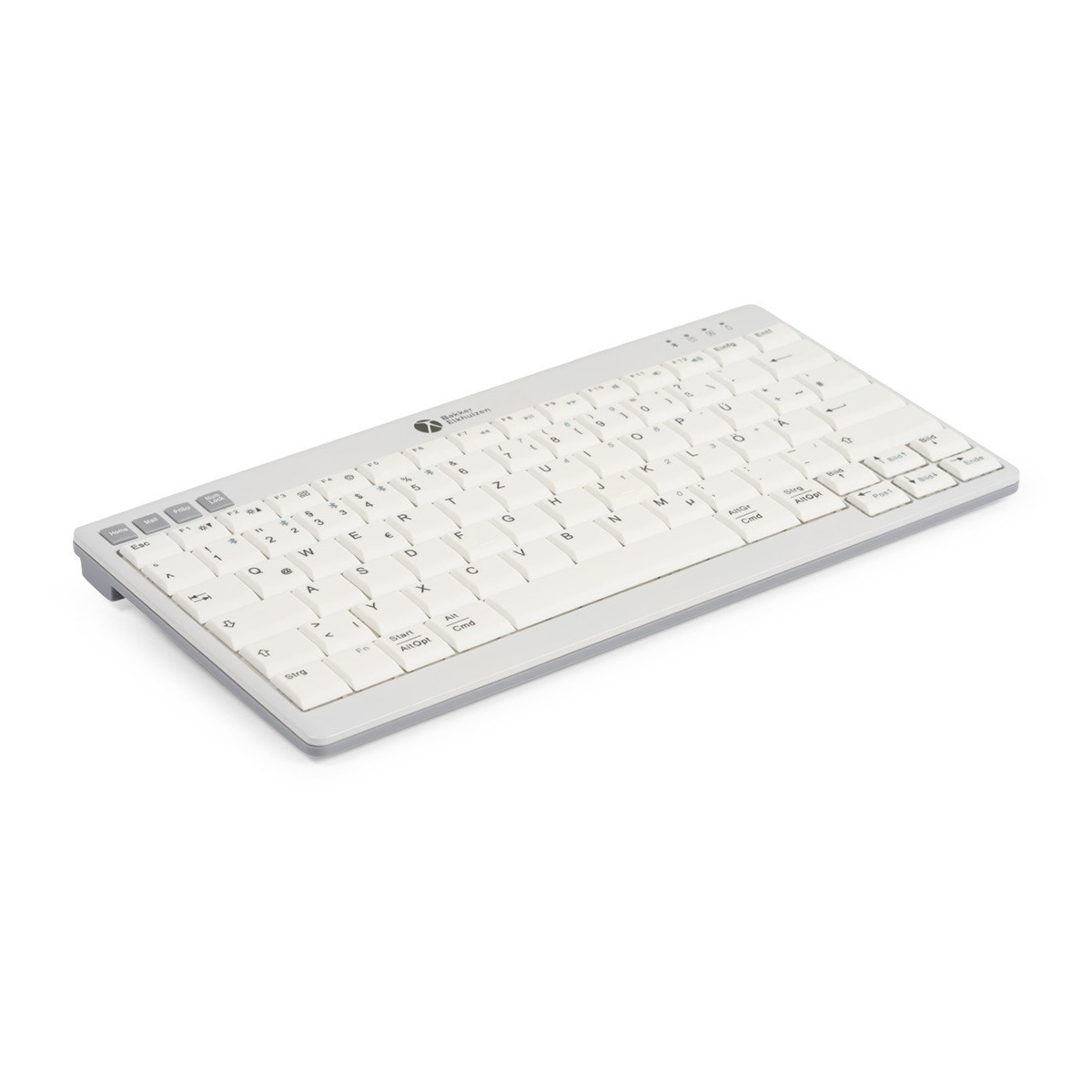 Despite its small size, it’s fully featured: scissor-switch keys with a 19 mm key centre spacing, concave keycaps with high-contrast dark lettering on a light background for clear visibility, plus hotkeys, multimedia keys, and status LEDs.