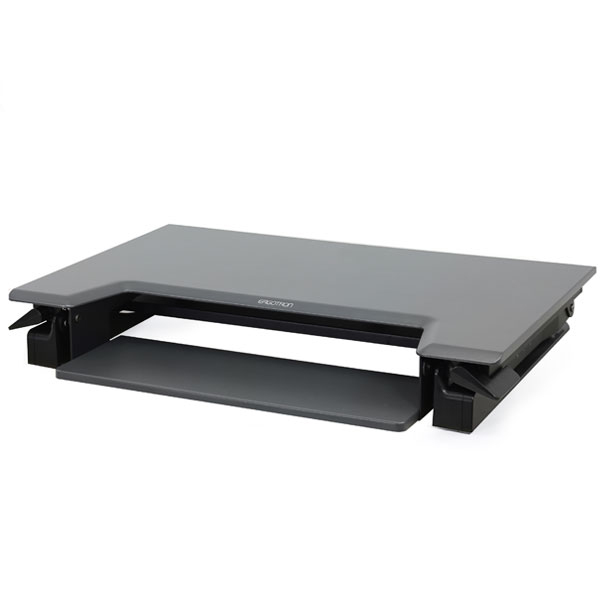 This revolutionary new platform from Ergotron offers a real alternative to more expensive electric desks. With the WorkFit, you can easily and simultaneously lift your LCD screens to a proper height for unsurpassed ergonomic comfort and unlike the Varidesks, these simply lift up and downwithout moving forward, allowing you to save space and always staying within the footprint of your desktop.